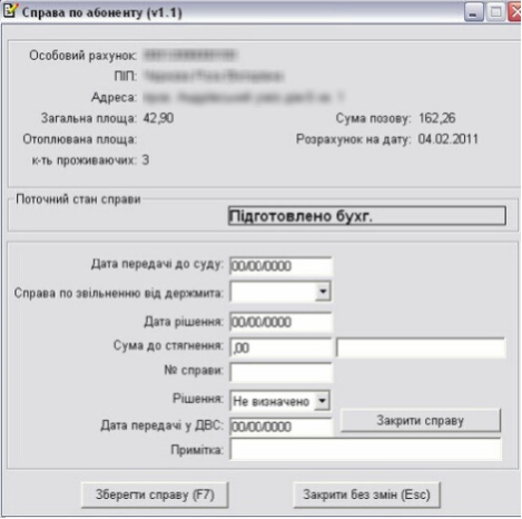 Відкриється нове вікно "Справа по абоненту"