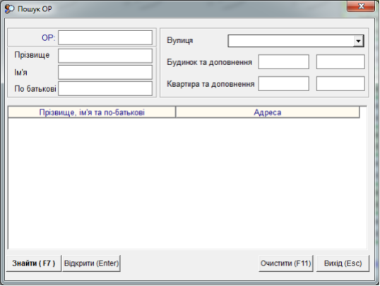 Відкриється вікно "Пошук ОР". У даному вікні потрібно вказати потрібні параметри для пошуку, і нажати "Знайти" (F7).