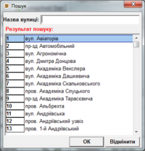 Якщо Ви забули код вулиці, для цього перейдіть на поле "Пошук по ОР" і натисніть клавішу F12