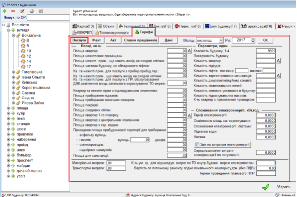 У даній вкладці виводяться тарифи по конкретному будинку. Цю операцію потрібно виконати по кожному будинку, які обслуговує ваше підприємсто.