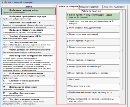 В даному пункті можливо переглянути список послуг та робіт по кожній з них, при необхідності є змога відредагувати список.