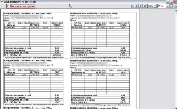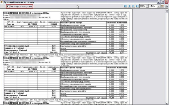 * відкриється вікно сформованих квитанцій. Якщо потрібно квитанцію з послугами, поставте відмітку, якщо ні - зніміть.