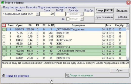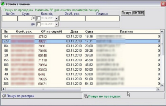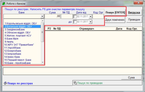 Для проведення банку потрібно задати параметри пошуку, потім натиснути "Пошук(Enter)"