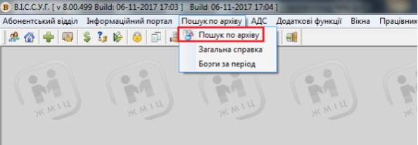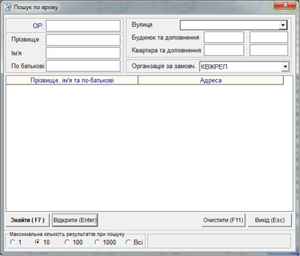 У вікні "Пошук по архіву" вказати потрібні параметри, і нажати кнопку "Знайти"(F7)