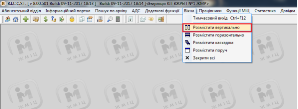 Для того щоб одночасно бачити і працювати у двох чи більше відкритих вікнах, перейти у меню: "Вікна" - "Розмістити вертикально":