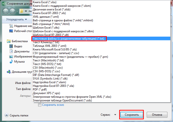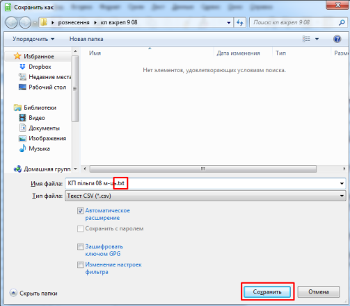 - у полі “Имя файла” змінюємо “csv” на “txt”, та натискаємо “Сохранить”: