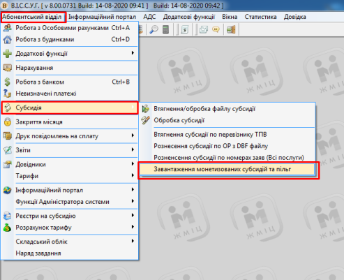 - вибираємо пункт меню “Завантаження монетизованих субсидій та пільг”