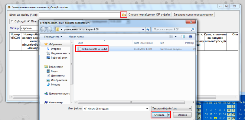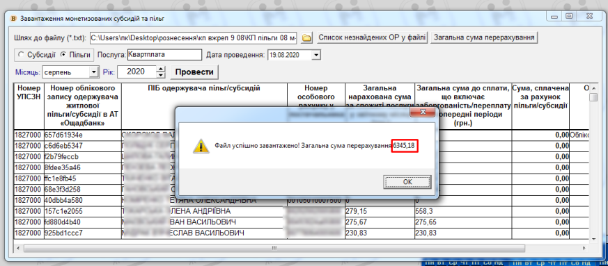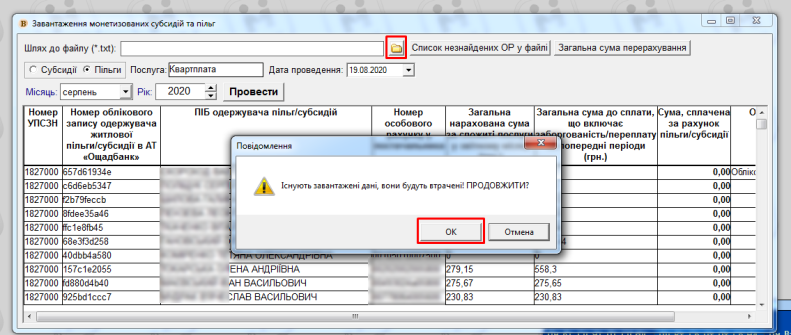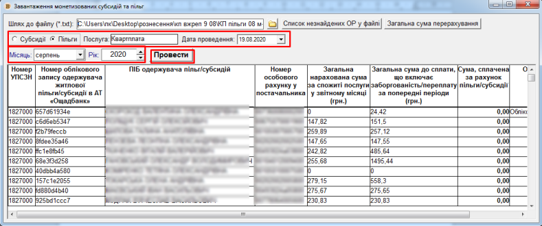 - вказати дату, яка вказана у файлі пільговиків або отримувачів субсидії
