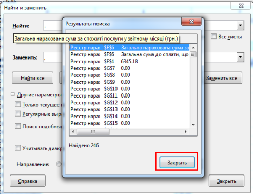 далі натиснути “Найти все” і відкриється маленьке вікно: