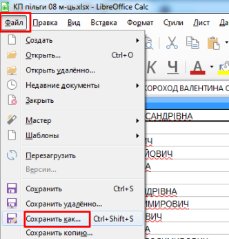 5. Далі відкриваємо у меню: Файл — Сохранить как: