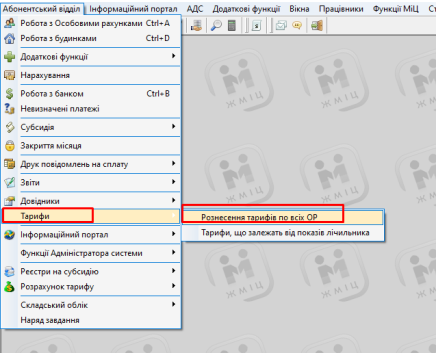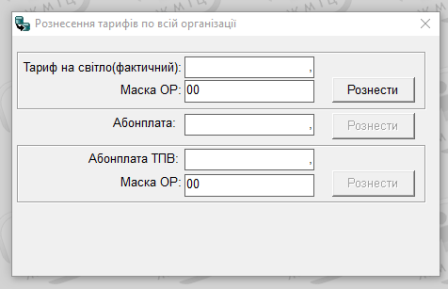 Для рознесення тарифу по всіх ор організації: Абонентський відділ - Тарифи - Рознесення тарифів по всіх ОР: