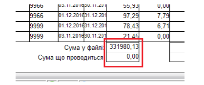 Коли галочки скрізь проставлені, потрібно звірити чи сходиться “Сума у файлі” та “Сума що проводиться”