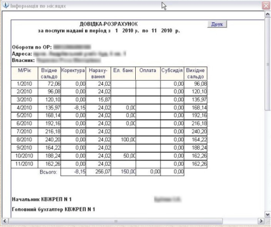 Друк повідомлень на сплату