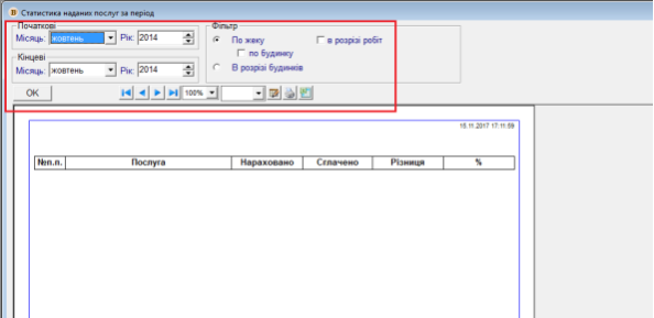 Є можливість побудувати звіт "Статистика наданих послуг за період":