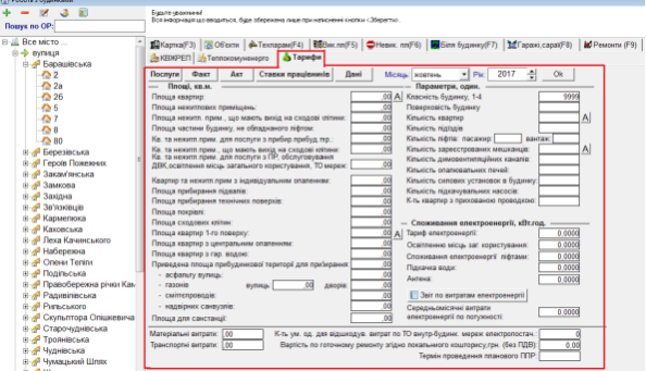 На вкладці "Тарифи" відображено тарифи по будинку: