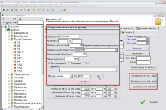 Якщо потрібно зробити перерахунок по стокам, тоді все аналогічно як по перерахунку по воді, і якщо перерахунок по стокам Вам потрібно зробити по всіх ОР, і у Вас немає гарячої води, тоді потрібно поставити галочку "По всім ор де немає гарячої води":