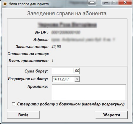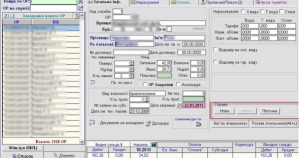 Для того, щоб додати нову справу, потрібно перейти у вікно "Робота з особовими рахунками", відкрити потрібний ОР, потім нажати кнопку "Нова" в розділі "Справи".
