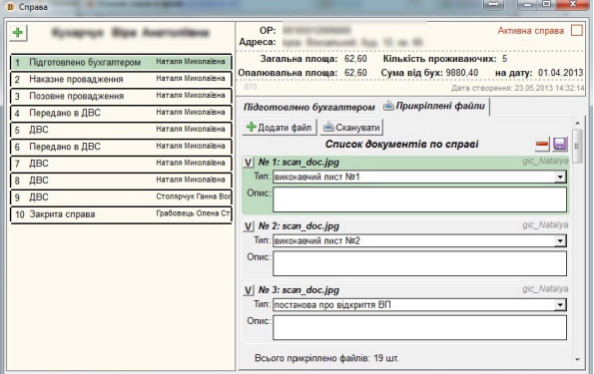 щоб переглянути весь хід по певній справі, потрібно двічі клацнути мишкою по потрібній справі, і відкриється вікно "Справа":