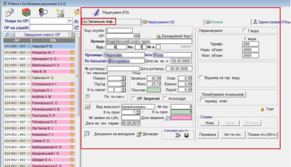 На вкладці "Загальна інформація" відображено інформацію по Особовому Рахунку: