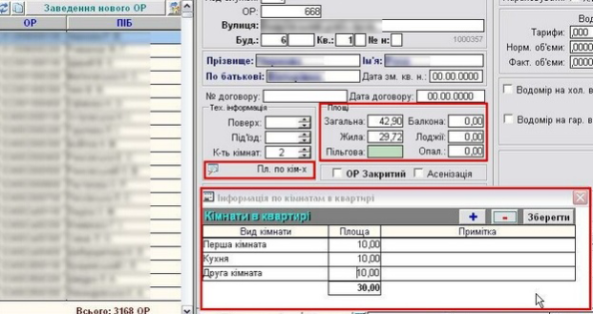 - "Площа по кімнатах" - в даному блоці є можливість вказати площу кожної з кімнат квартири окремо: