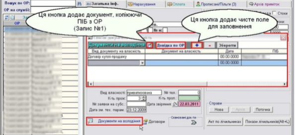 - Для внесення змін до документу на володіння потрібно нажати на "Документи на володіння" та провести потрібні зміни. Після внесення потрібних змін - нажати на кнопку "Зберегти".