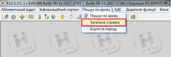 Для формування загальної справки по архіву, потрібно увійти у меню: "Пошук по архіву" - "Загальна справка"