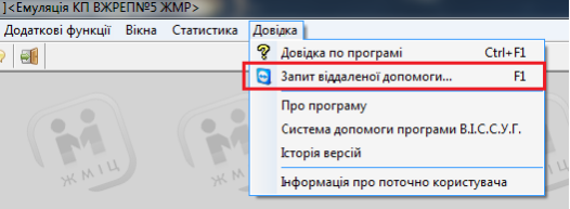 У разі потреби щоб працівник МІЦ зайшов до Вас на комп'тер через віддалену допомогу, нажміть відповідний пункт меню (або F1) і продиктуйте працівнику МІЦ ваш ай ді та пароль: