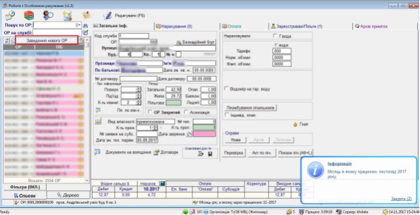 Для того, щоб завести новий особовий рахунок потрібно нажати на кнопку "Заведення нового ОР":